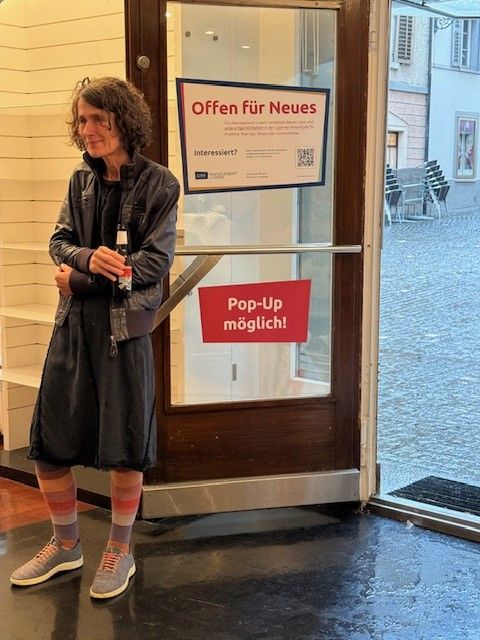 Ich habe Erich Felber beim Apéro angesprochen, und er zeigte sich sofort offen gegenüber der Idee. Kurz darauf trafen wir uns zu einem gemeinsamen Gespräch, bei dem ich ein erstes Konzept ausgearbeitet habe. Daraus entstand ein informatives Handout, das Eigentümer:innen über das Potenzial einer künstlerischen Zwischennutzung informiert – sei es für Schaufenster oder ganze Ladenflächen.